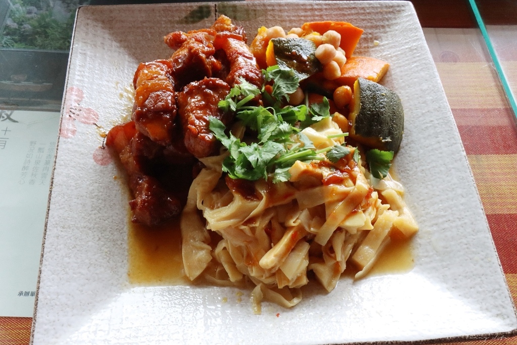 筍絲控肉有搭配南瓜、鷹嘴豆,這個搭配很特別,好吃又不油膩。